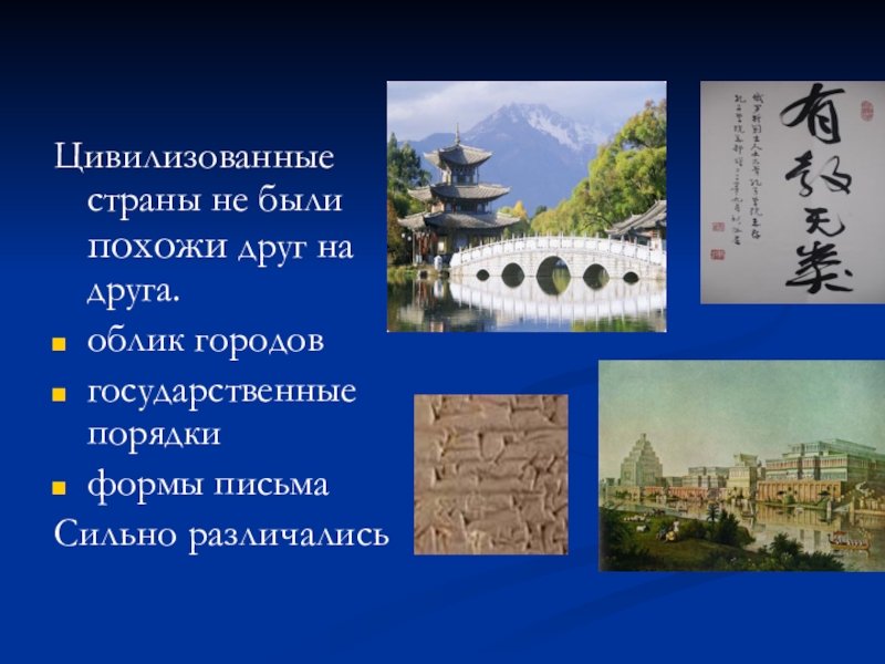 Слайд 8Цивилизованные страны не были похожи друг на друга.