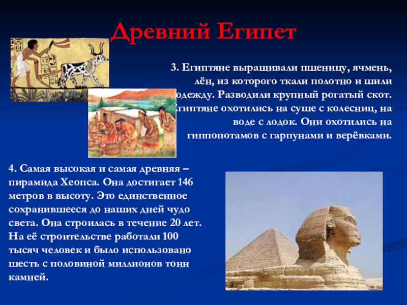 3. Египтяне выращивали пшеницу, ячмень, лён, из которого ткали полотно