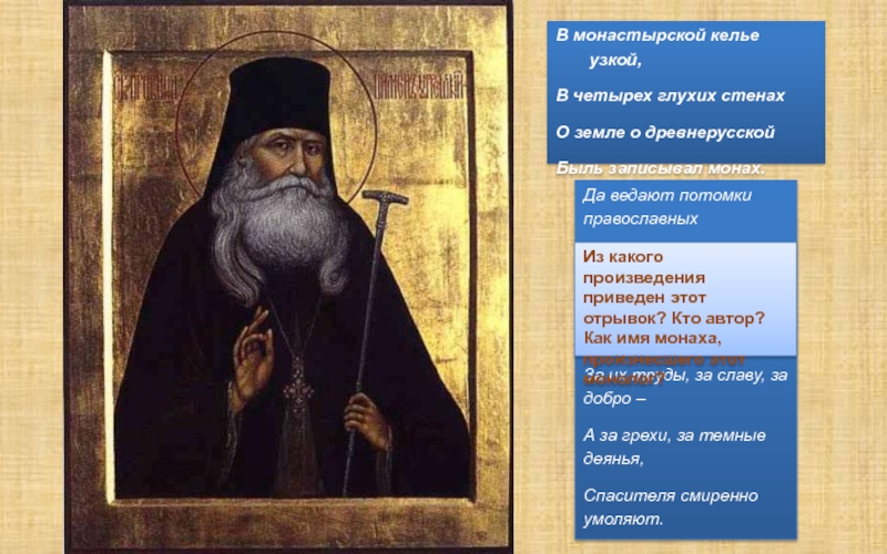 В монастырской келье узкой,