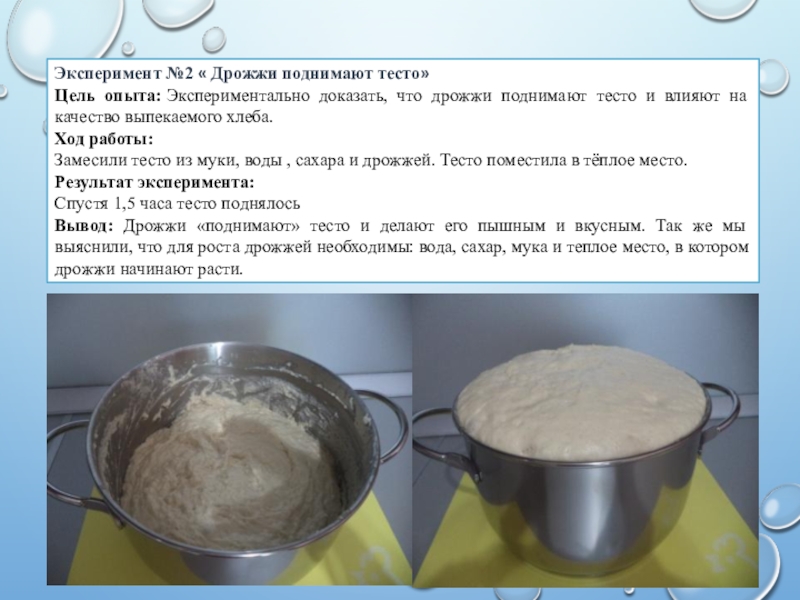 Слайд 11Эксперимент №2 « Дрожжи поднимают тесто»