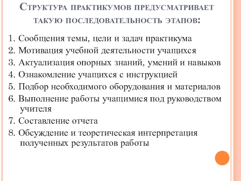 Слайд 4Структура практикумов предусматривает такую последовательность этапов: