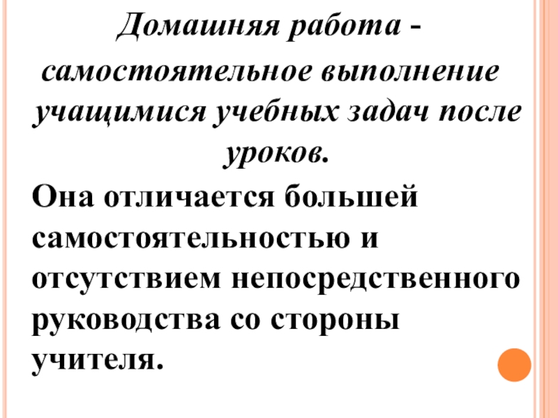 большей самостоятельностью и отсутствием непосредственного руководства со стороны учителя.