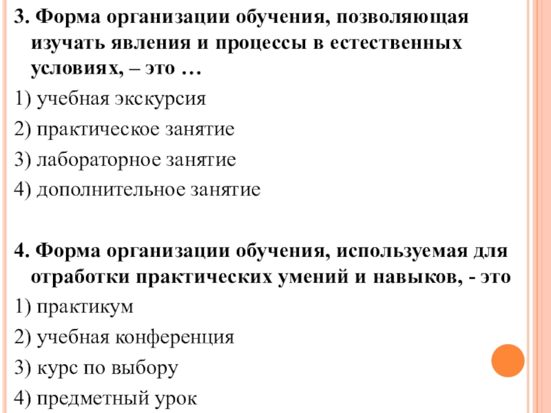 Слайд 143. Форма организации обучения, позволяющая изучать явления и процессы в естественных