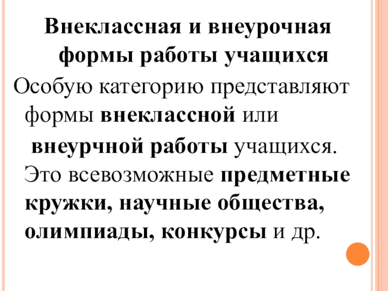 Слайд 12Внеклассная и внеурочная формы работы учащихся