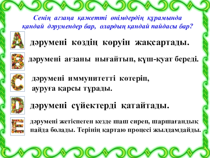 дәрумені ағзаны нығайтып, күш-қуат береді.