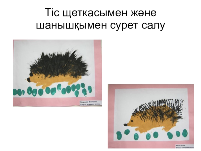 Слайд 10Тіс щеткасымен және шанышқымен сурет салу