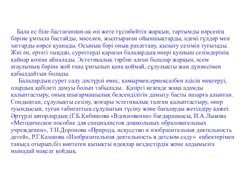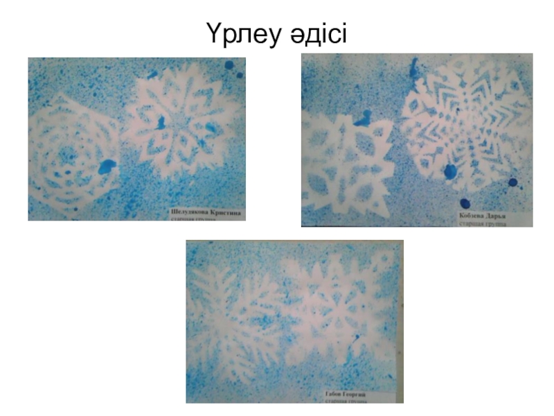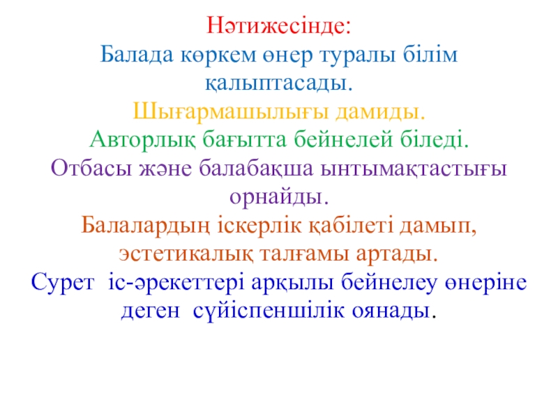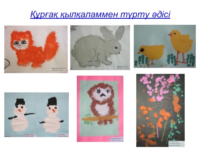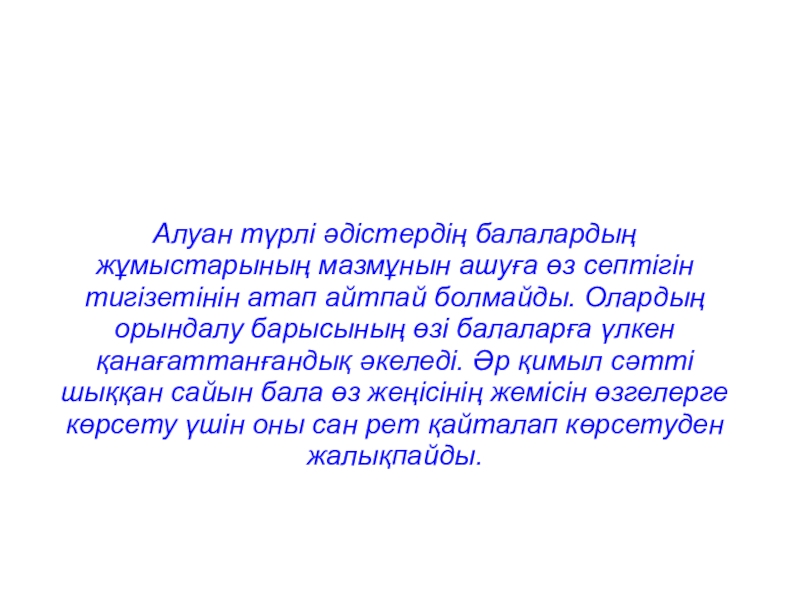 Слайд 25Алуан түрлі әдістердің балалардың жұмыстарының мазмұнын ашуға өз септігін тигізетінін атап
