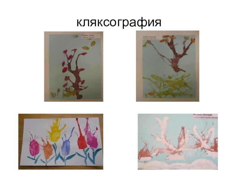 Слайд 5 Дәстүрлі емес әдіс-тәсіл түрлері: Тіс жуатын щеткамен, мөр басу, кляксография,