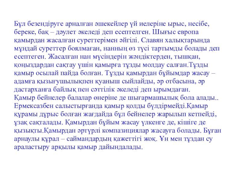 Слайд 22Бұл безендіруге арналған әшекейлер үй иелеріне ырыс, несібе,береке, бақ – дәулет