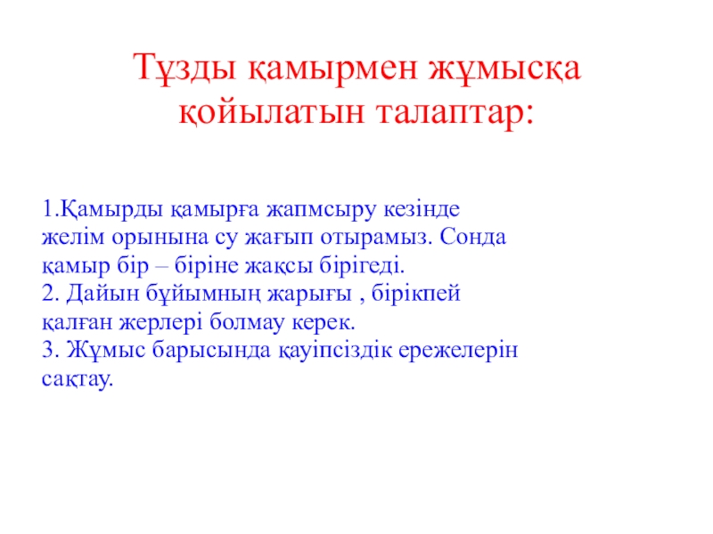 Тұзды қамырмен жұмысқа қойылатын талаптар: