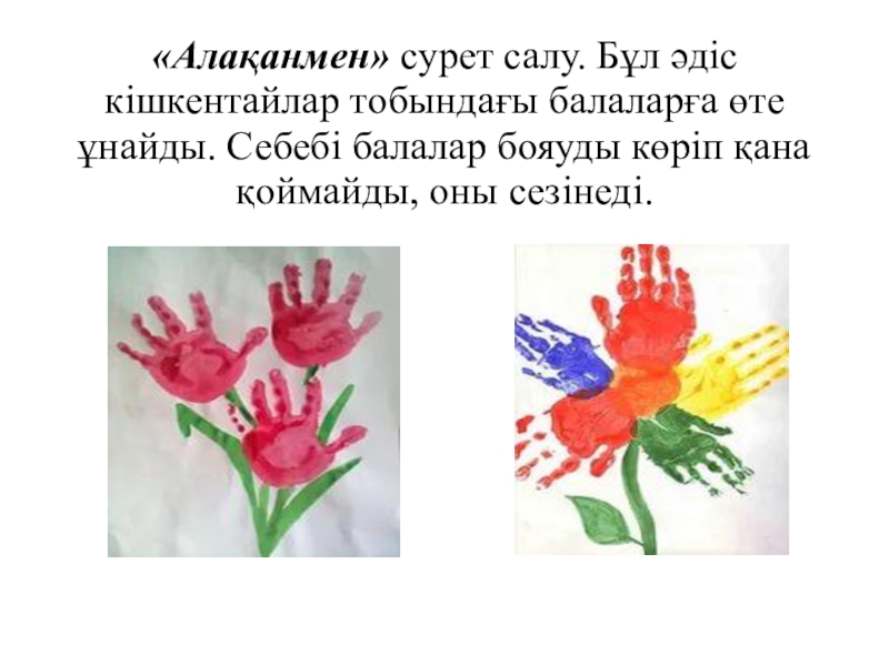 «Алақанмен» сурет салу. Бұл әдіс кішкентайлар тобындағы балаларға өте ұнайды. Себебі