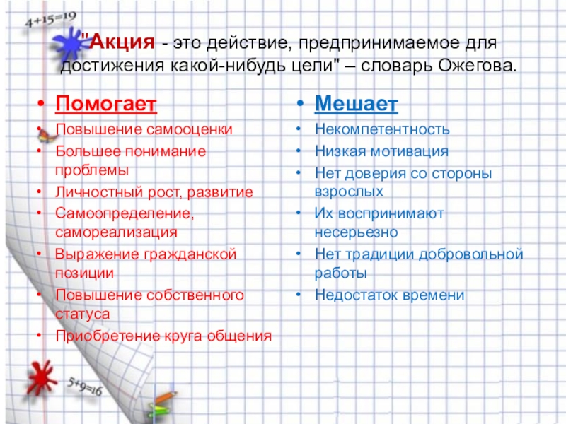 Это сайт презентаций, где можно хранить и обмениваться своими презентациями, докладами, проектами, шаблонами в формате PowerPoint с другими пользователями. Мы помогаем школьникам, студентам, учителям, преподавателям хранить и обмениваться учебными материалами.