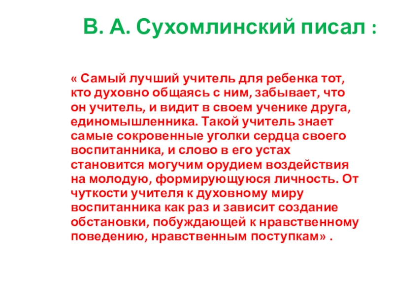 Слайд 2В. А. Сухомлинский писал :