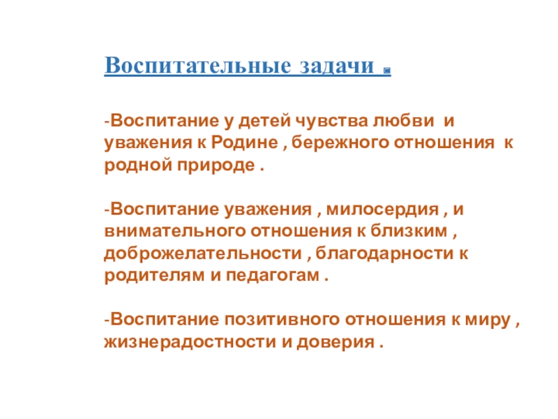 Слайд 5Воспитательные задачи .