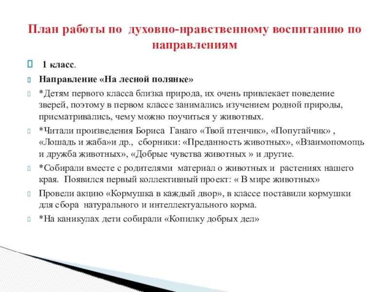 План работы по духовно-нравственному воспитанию по направлениям