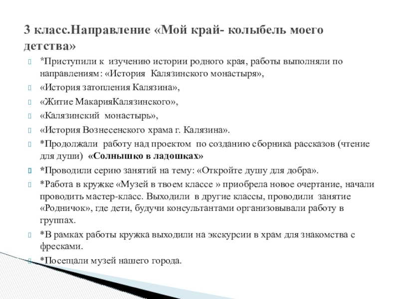3 класс.Направление «Мой край- колыбель моего детства»