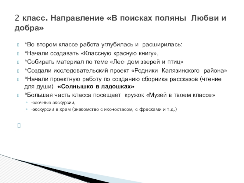 2 класс. Направление «В поисках поляны Любви и добра»