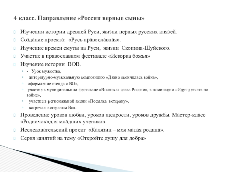 4 класс. Направление «России верные сыны»