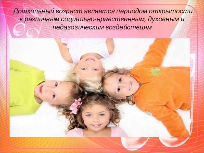 Слайд 4Дошкольный возраст является периодом открытости к различным социально-нравственным, духовным и педагогическим