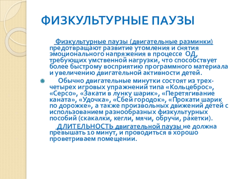 Слайд 10ФИЗКУЛЬТУРНЫЕ ПАУЗЫ
