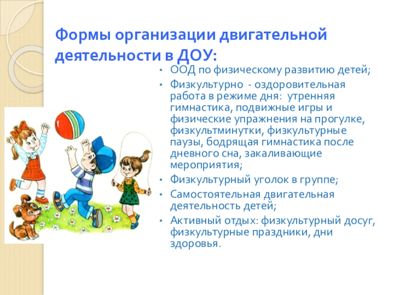 Слайд 2Формы организации двигательной деятельности в ДОУ: