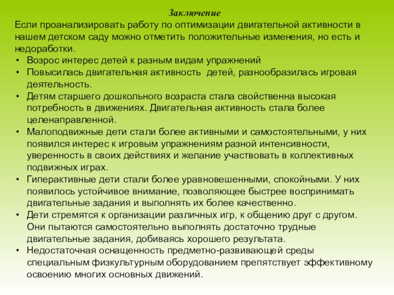 Если проанализировать работу по оптимизации двигательной активности в нашем детском саду