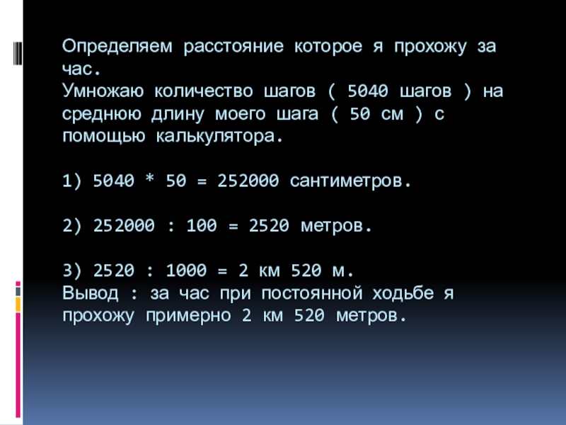 Слайд 8Определяем расстояние которое я прохожу за час.