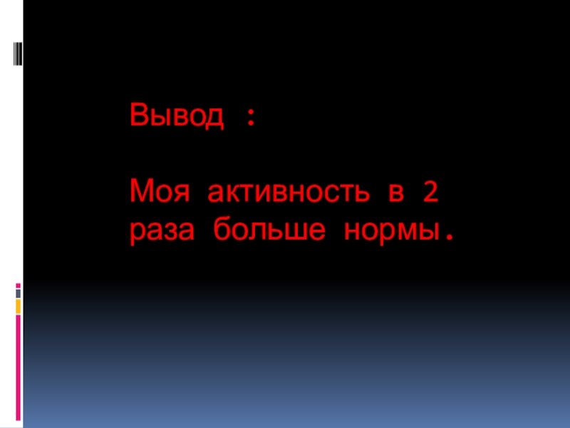 Провести измерение своей двигательной активности, сравнить результаты с нормой и сделать вывод по работе.