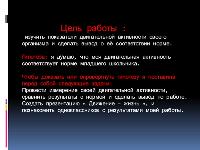 Гипотеза: я думаю, что моя двигательная активность соответствует норме младшего школьника.