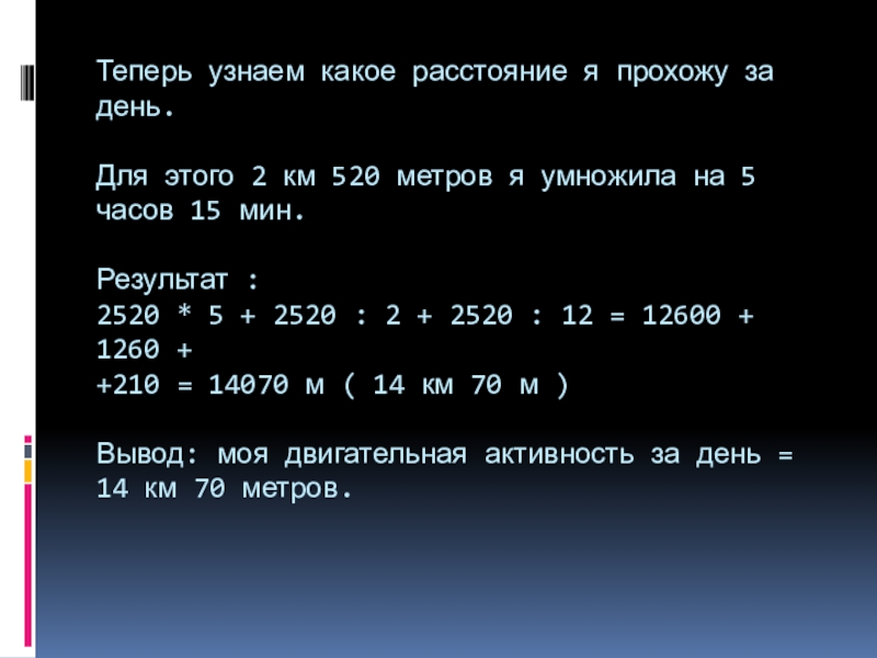 Слайд 11Теперь узнаем какое расстояние я прохожу за день.