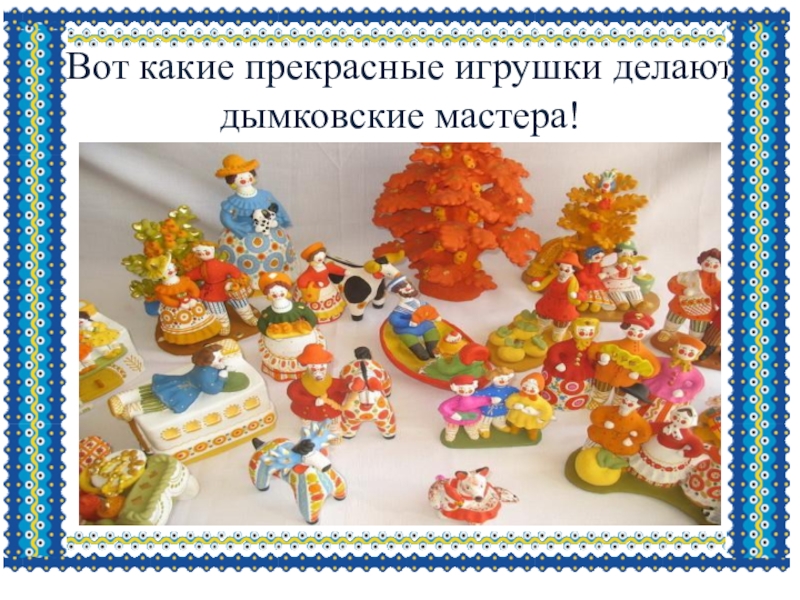 Слайд 10Вот какие прекрасные игрушки делают дымковские мастера!