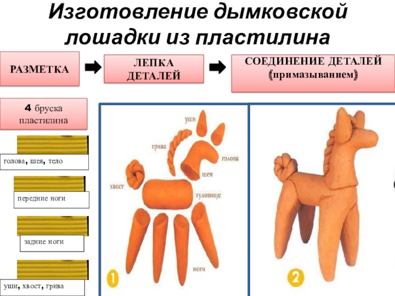Слайд 6Изготовление дымковской лошадки из пластилина