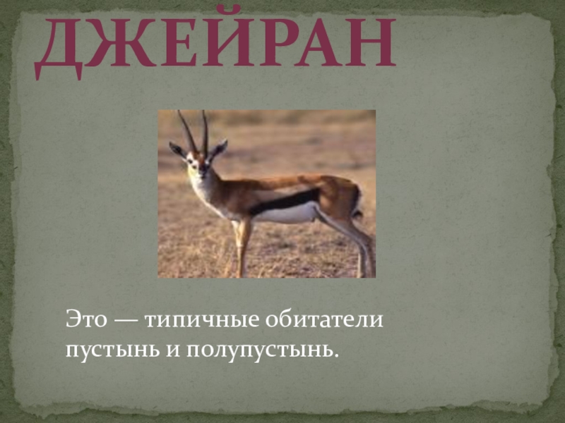 Слайд 3Джейраны — небольшие антилопы буровато-песочного цвета, с черными рогами и черным