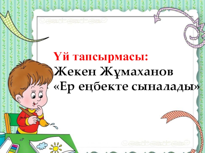 Үй тапсырмасы:Жекен Жұмаханов «Ер еңбекте сыналады»