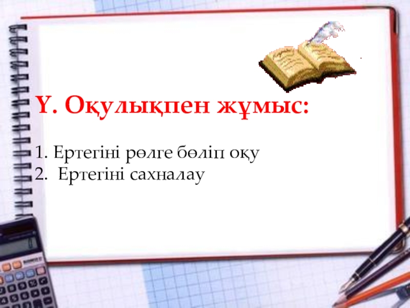 Ү. Оқулықпен жұмыс:1. Ертегіні рөлге бөліп оқу2. Ертегіні сахналау