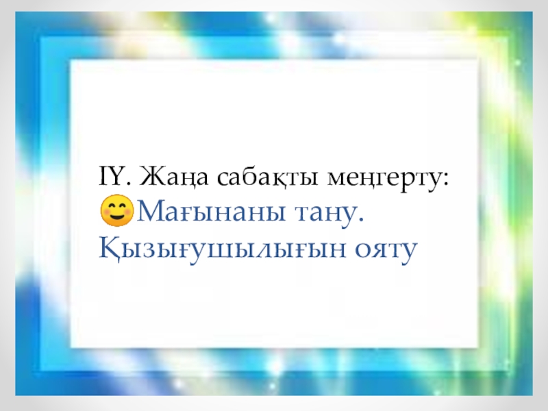 ІҮ. Жаңа сабақты меңгерту:Мағынаны тану. Қызығушылығын ояту