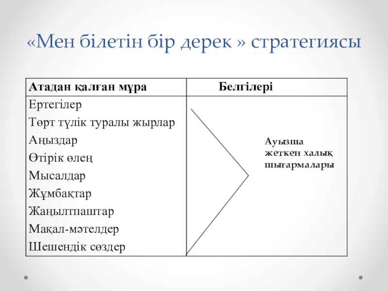 «Мен білетін бір дерек » стратегиясыАуызша жеткен халық шығармалары