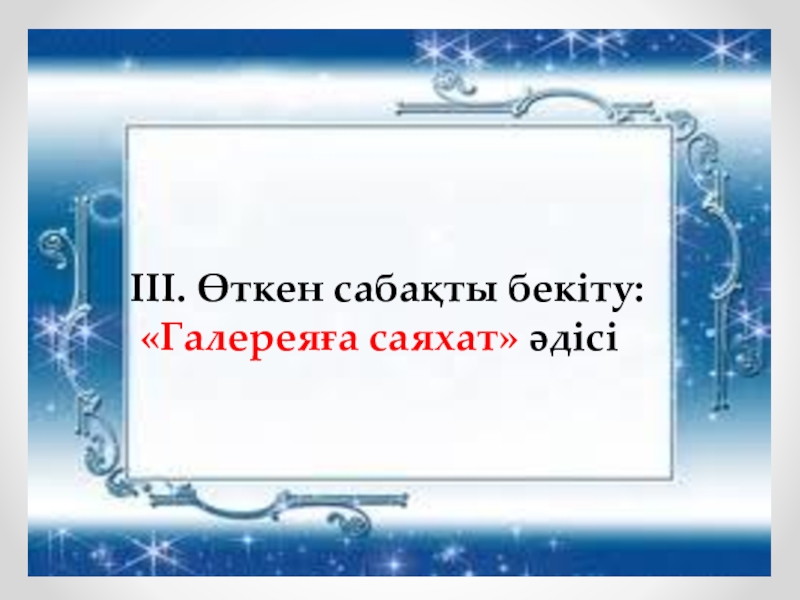 ІІІ. Өткен сабақты бекіту: «Галереяға саяхат» әдісі