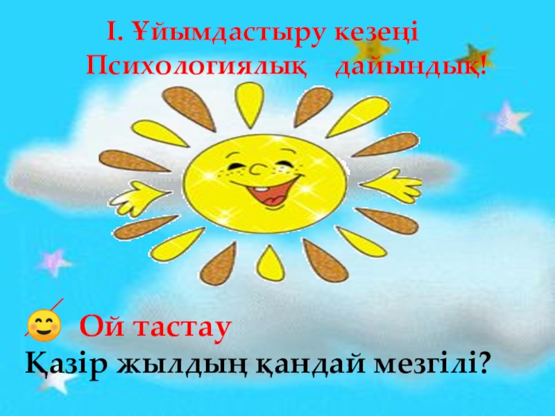 І. Ұйымдастыру кезеңі Психологиялық дайындық! Ой тастау Қазір жылдың қандай мезгілі?