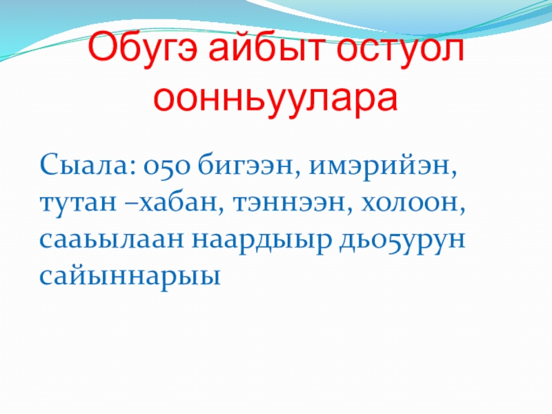 Слайд 1Обугэ ойу уьугуннарар оонньуулара