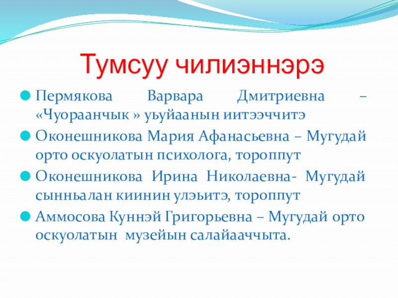 Афанасьевна – Мугудай орто оскуолатын психолога, тороппут