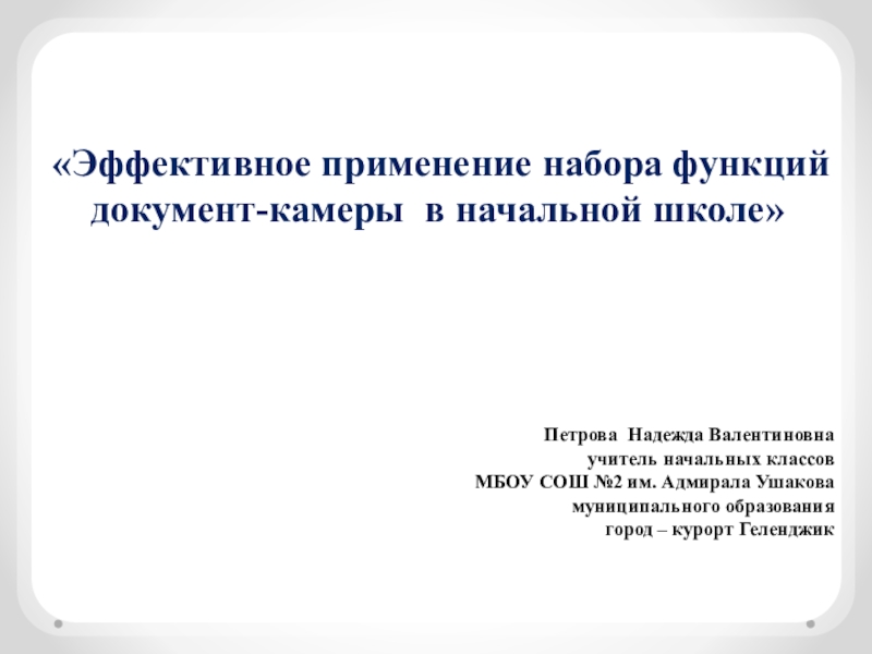 Слайд 1 «Эффективное применение набора функций документ-камеры в начальной школе»