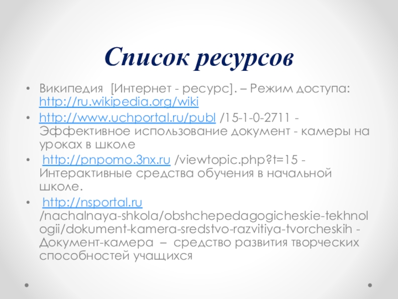 http://nsportal.ru /nachalnaya-shkola/obshchepedagogicheskie-tekhnologii/dokument-kamera-sredstvo-razvitiya-tvorcheskih - Документ-камера – средство развития творческих способностей учащихся