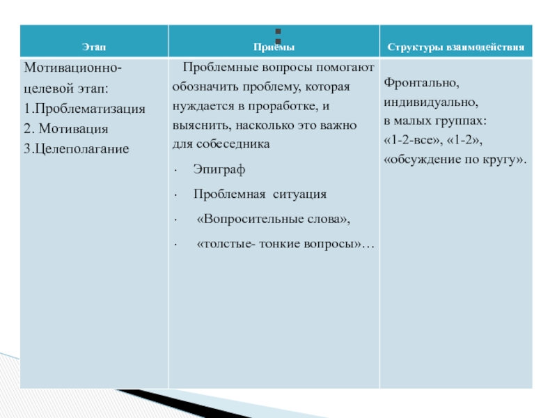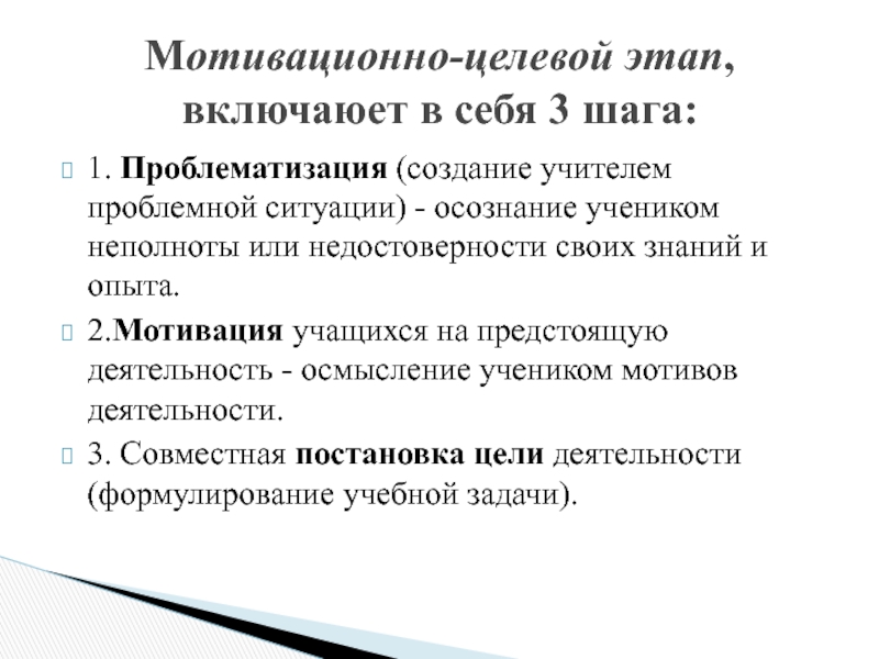 Мотивационно-целевой этап, включаюет в себя 3 шага: