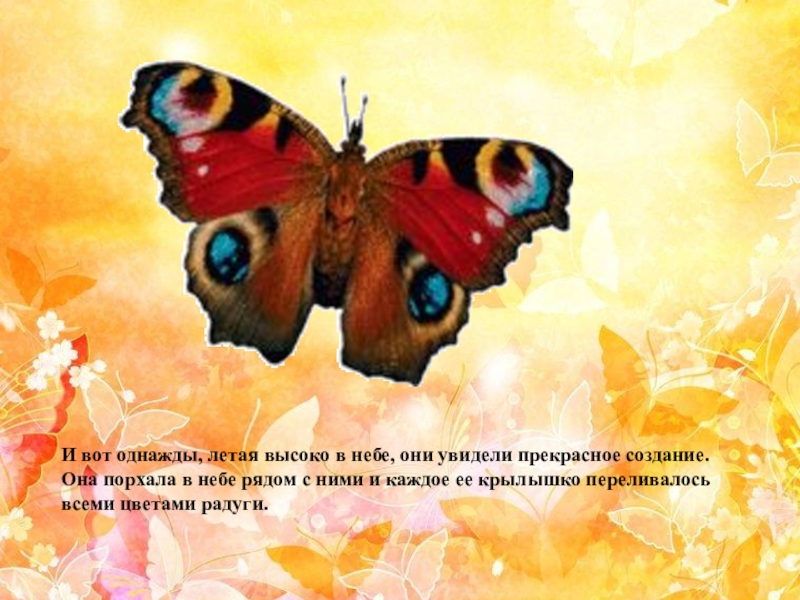 Слайд 12И вот однажды, летая высоко в небе, они увидели прекрасное создание.