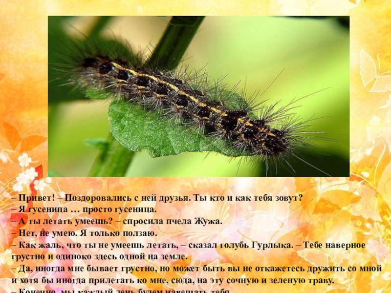 Слайд 2 Мой юный друг! Ты когда-нибудь видел гусеницу? Вот и прекрасно.