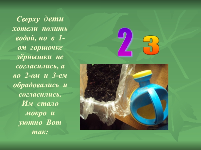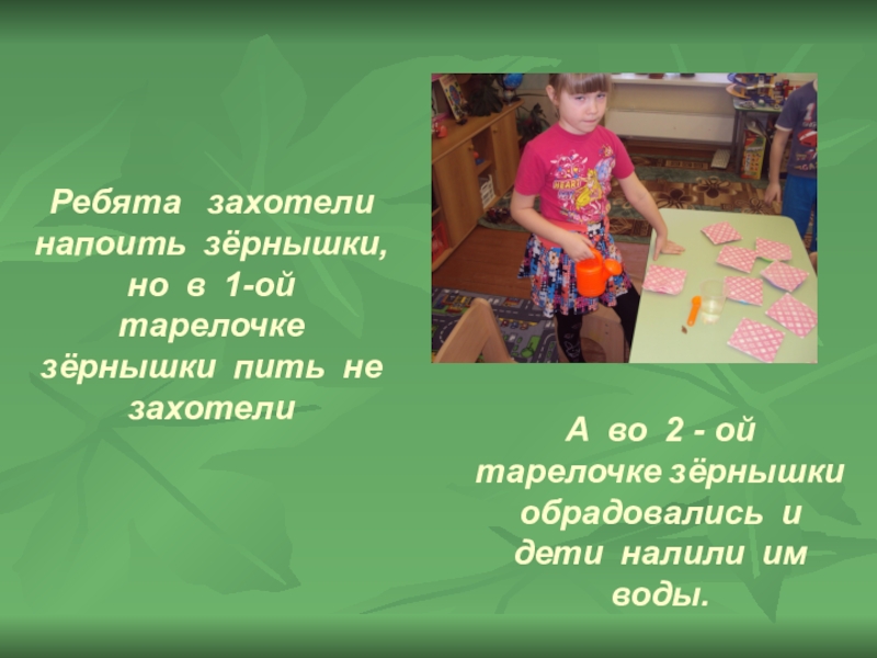 А во 2 - ой тарелочке зёрнышки обрадовались и дети налили им воды.