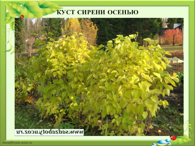 Слайд 11КУСТ СИРЕНИ ОСЕНЬЮ