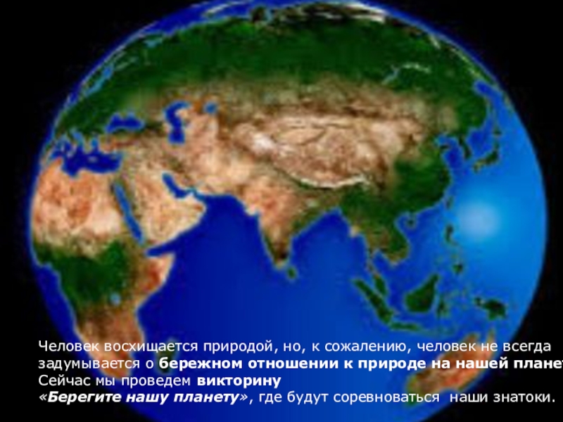 Человек восхищается природой, но, к сожалению, человек не всегда задумывается о бережном отношении к природе на нашей планете.