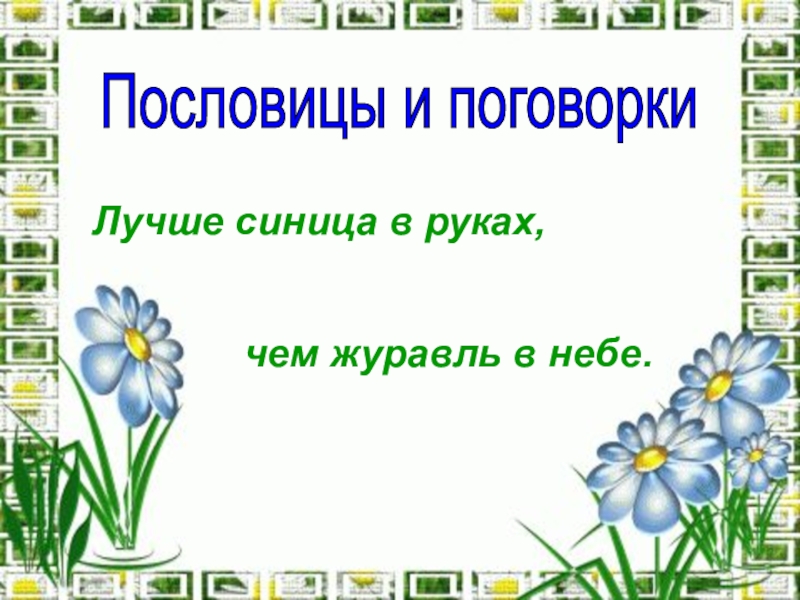 Пословицы и поговоркиЛучше синица в руках,чем журавль в небе.
